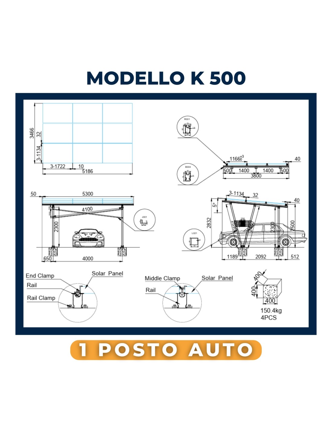 Pergola M940 in alluminio per 2 auto: design robusto, energia pulita