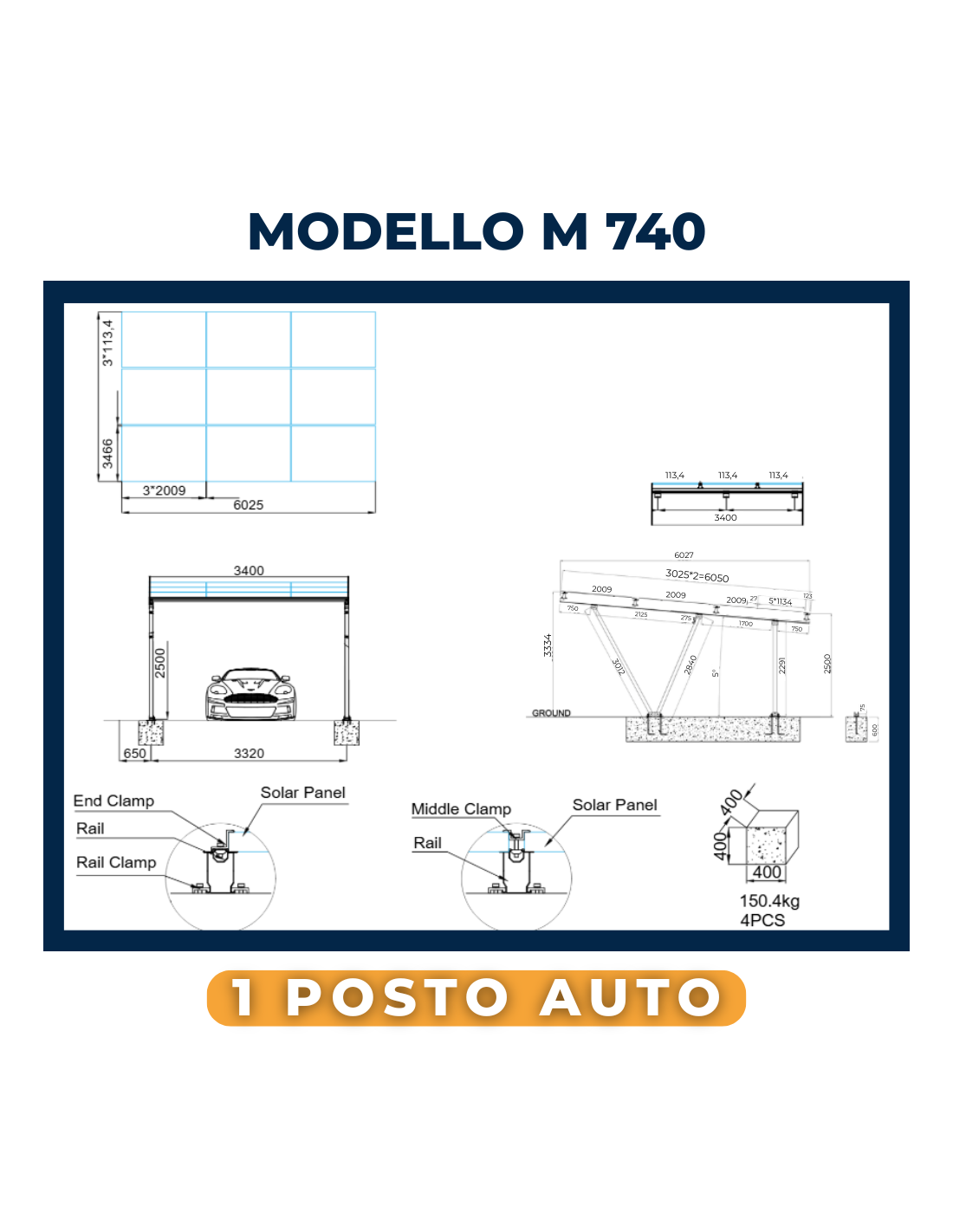 Pergola fotovoltaica K650 per 2 auto: struttura in alluminio con pannelli