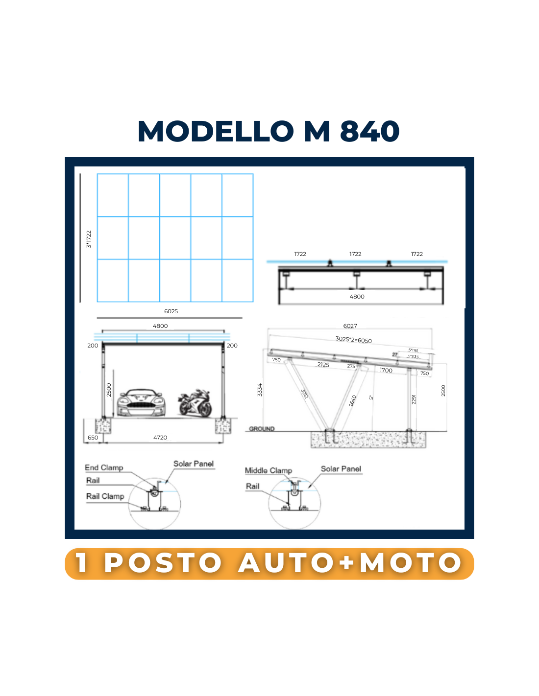 Pergola Fotovoltaica Alluminio M840 - 2 Posti Auto