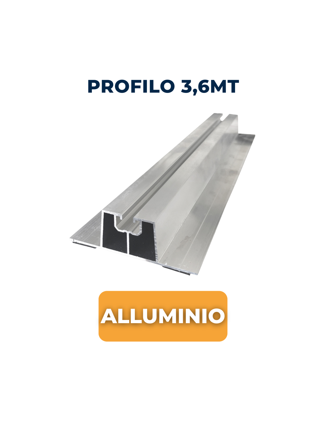 Profilo in alluminio anodizzato da 3,6 metri: supporto ideale per impianti fotovoltaici. Robusto, leggero e resistente alla corrosione.