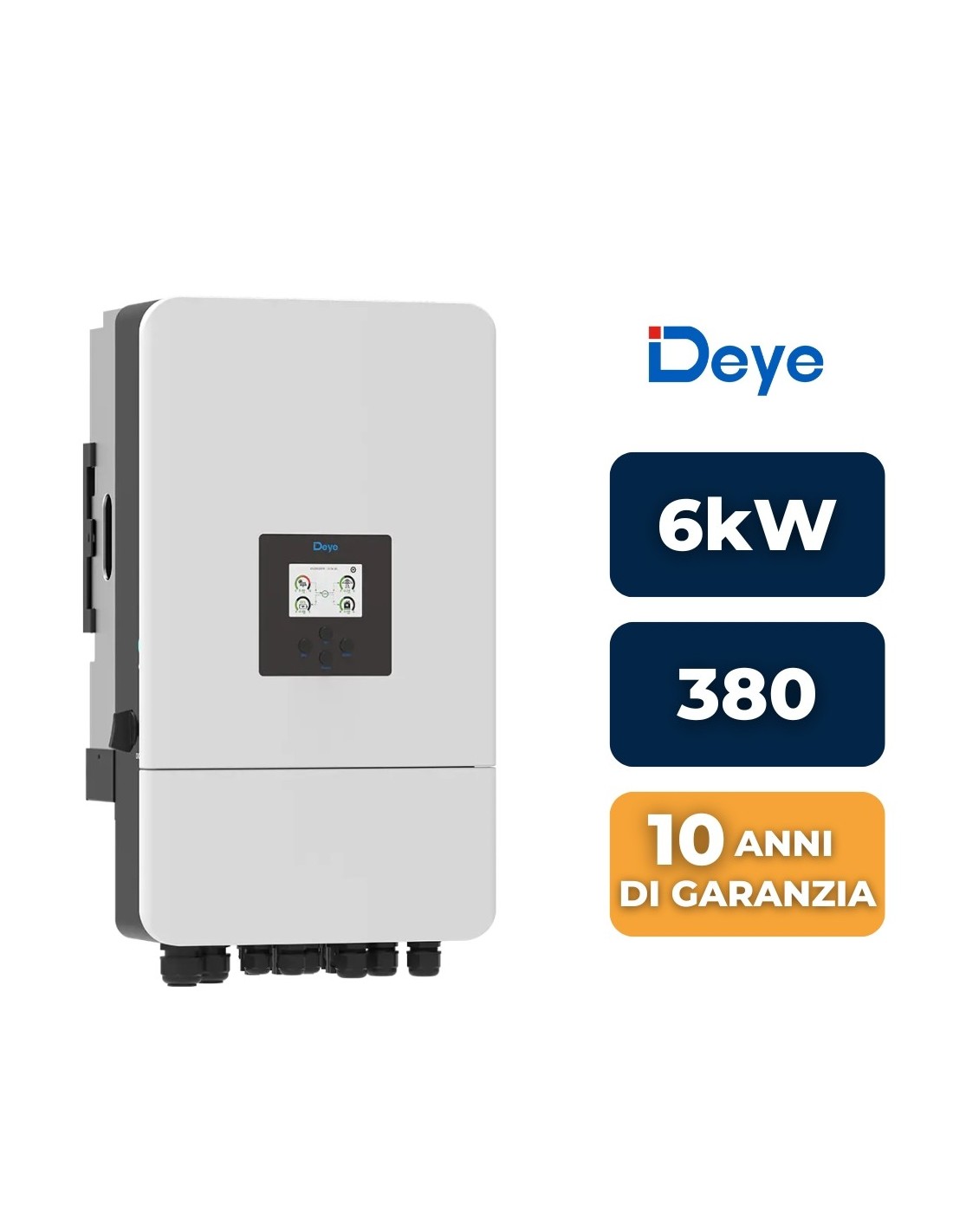 L’Inverter Ibrido Trifase 6 kW – SKU 12345 di DEYE/V-TAC è una soluzione compatta e flessibile per impianti fotovoltaici residenziali, commerciali o condominiali, ideale per chi desidera autoproduzione, accumulo con batterie e compatibilità sia in modalità collegata alla rete (On-Grid) che isolata (Off-Grid / ibrida).