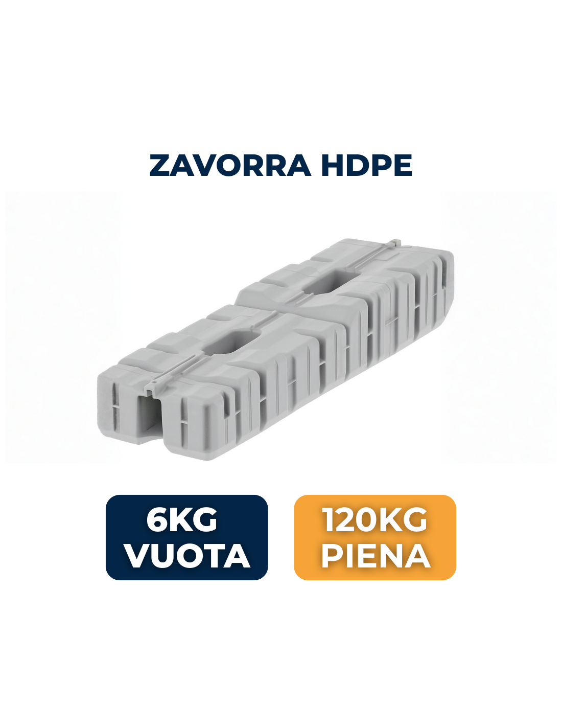 La zavorra in HDPE da 6 kg è un supporto tecnico progettato per l’installazione di pannelli fotovoltaici su tetti piani, terrazzi e superfici dove non è consentita o non è consigliata la foratura. Realizzata in polietilene ad alta densità (HDPE), un materiale altamente resistente ai raggi UV, agli agenti atmosferici e all’usura nel lungo periodo, rappresenta una soluzione professionale per installatori e aziende del settore.