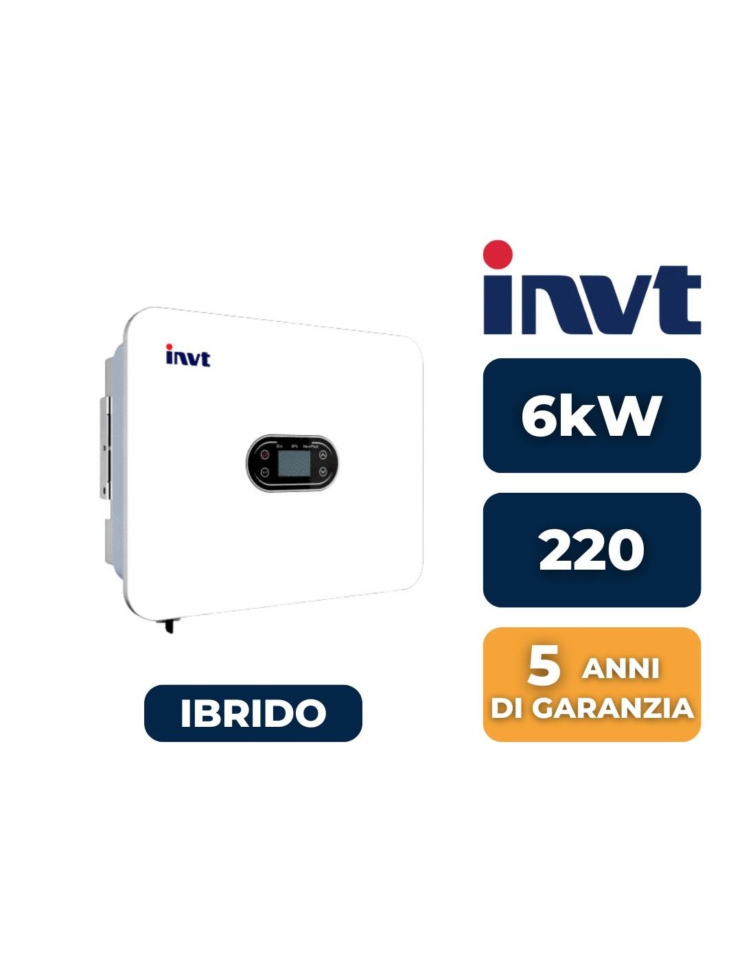 L’INVT XD6KTL è un inverter Ibrido monofase da 6kW progettato per impianti fotovoltaici residenziali, che unisce compattezza, efficienza e protezione avanzata. Supporta una tensione d’ingresso fino a 600V, con doppio MPPT indipendente e sovradimensionamento DC fino al 150%.