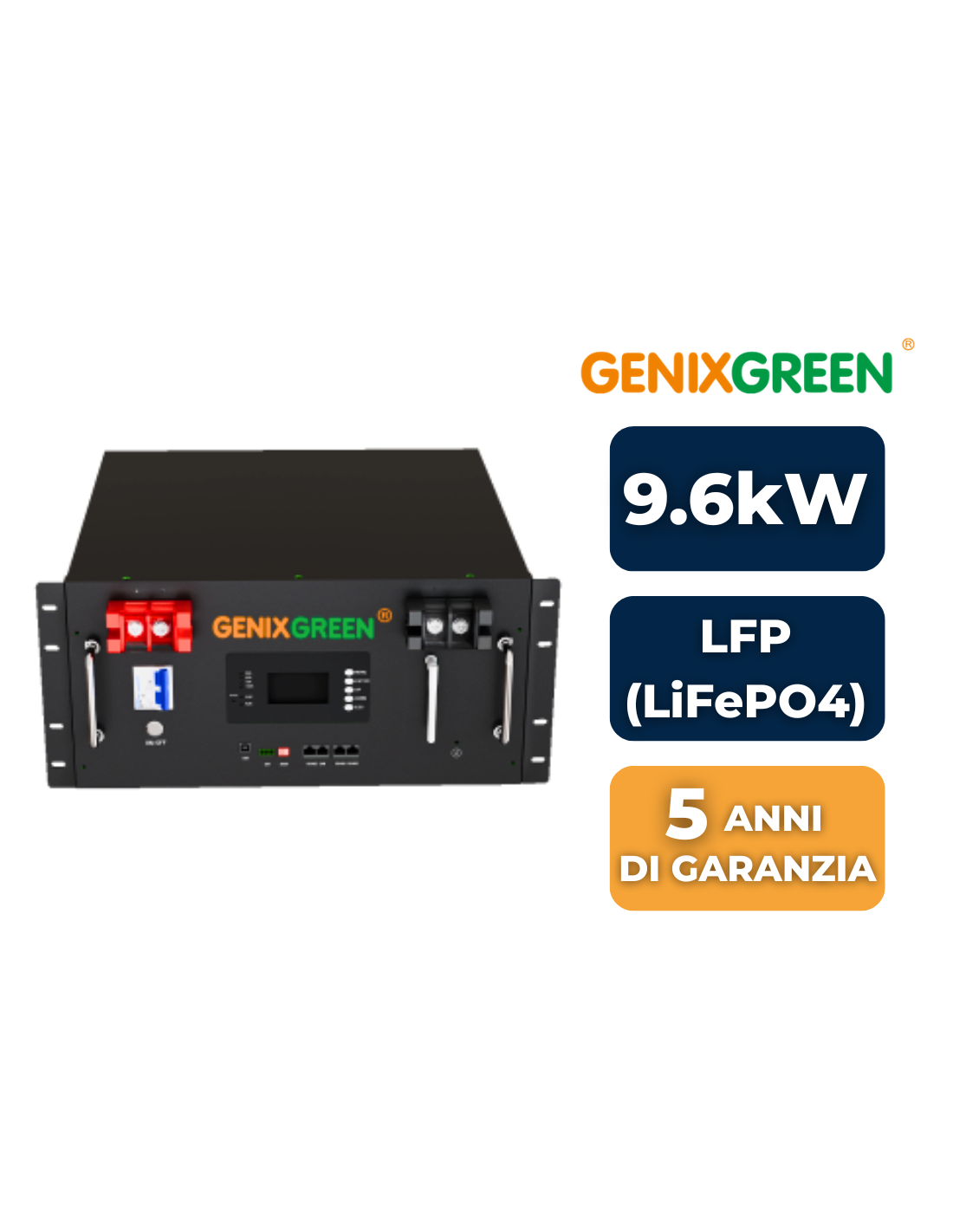 ferro fosfato) con energia nominale di 9,60 kWh, progettata per l’accumulo