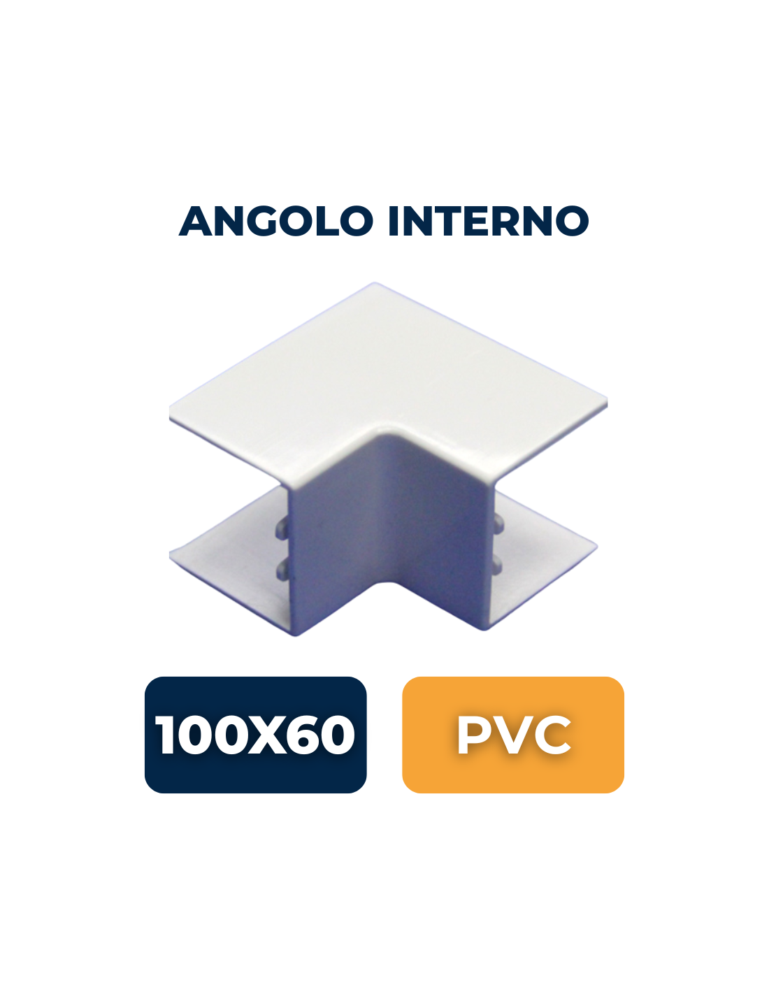 Angolo interno 100x60 mm: raccordo ideale per curve protette in canaline di grandi dimensioni. Robusto, ordinato e professionale.
